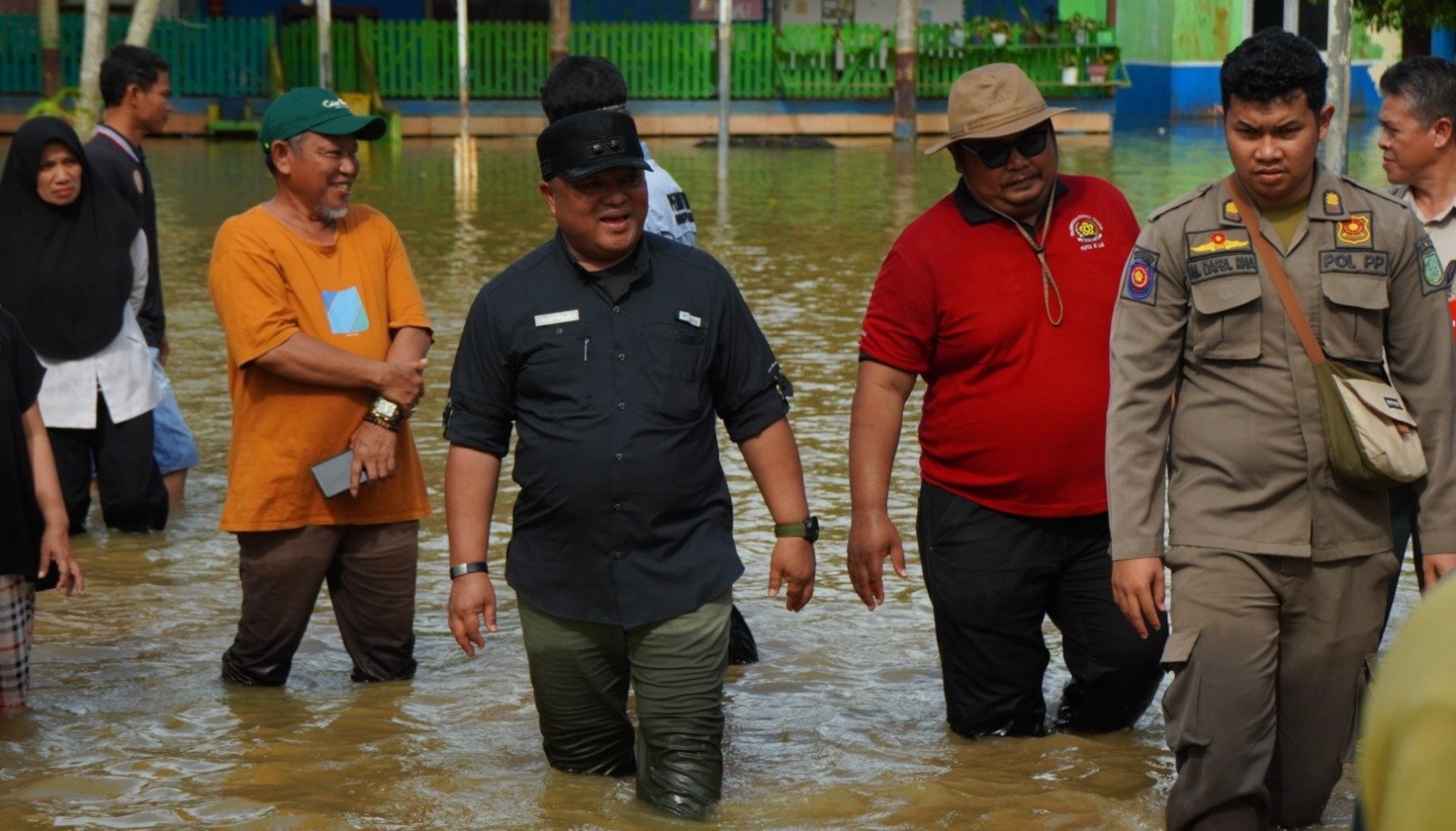 Wakil Bupati memulai peninjauannya di Kampung Gunung Sari, salah satu lokasi yang mengalami dampak banjir cukup signifikan. Ia turut meninjau kondisi SDN 001 Gunung Sari, di mana sebagian area sekolah terendam, sehingga kegiatan belajar mengajar harus dilakukan dari rumah.