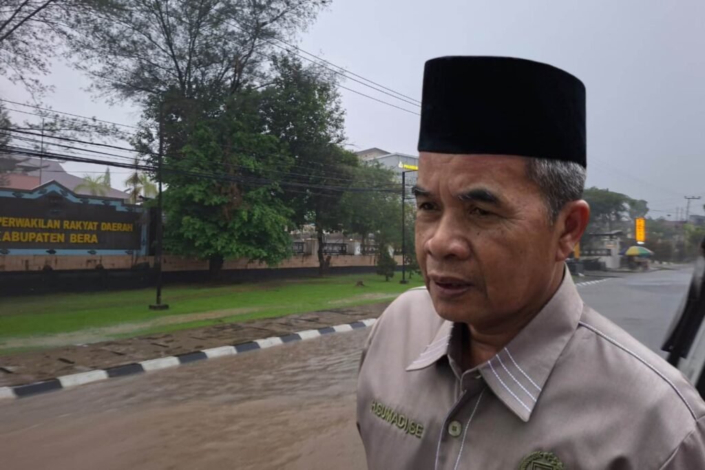TANJUNG REDEB, Swaraberau.com – Wilayah Kabupaten Berau beberapa hari terakhir selalu di guyur hujan cukup lebat. Hal itu menyebabkan beberapa ruas jalan protokol di perkotaan, termasuk badan jalan di depan kantor Dewan Perwakilan Rakyat Daerah (DPRD) jalan Gatot Subroto, Kecamatan Tanjung Redeb di selimuti air sehingga tidak terlihat lagi badan jalan tersebut.