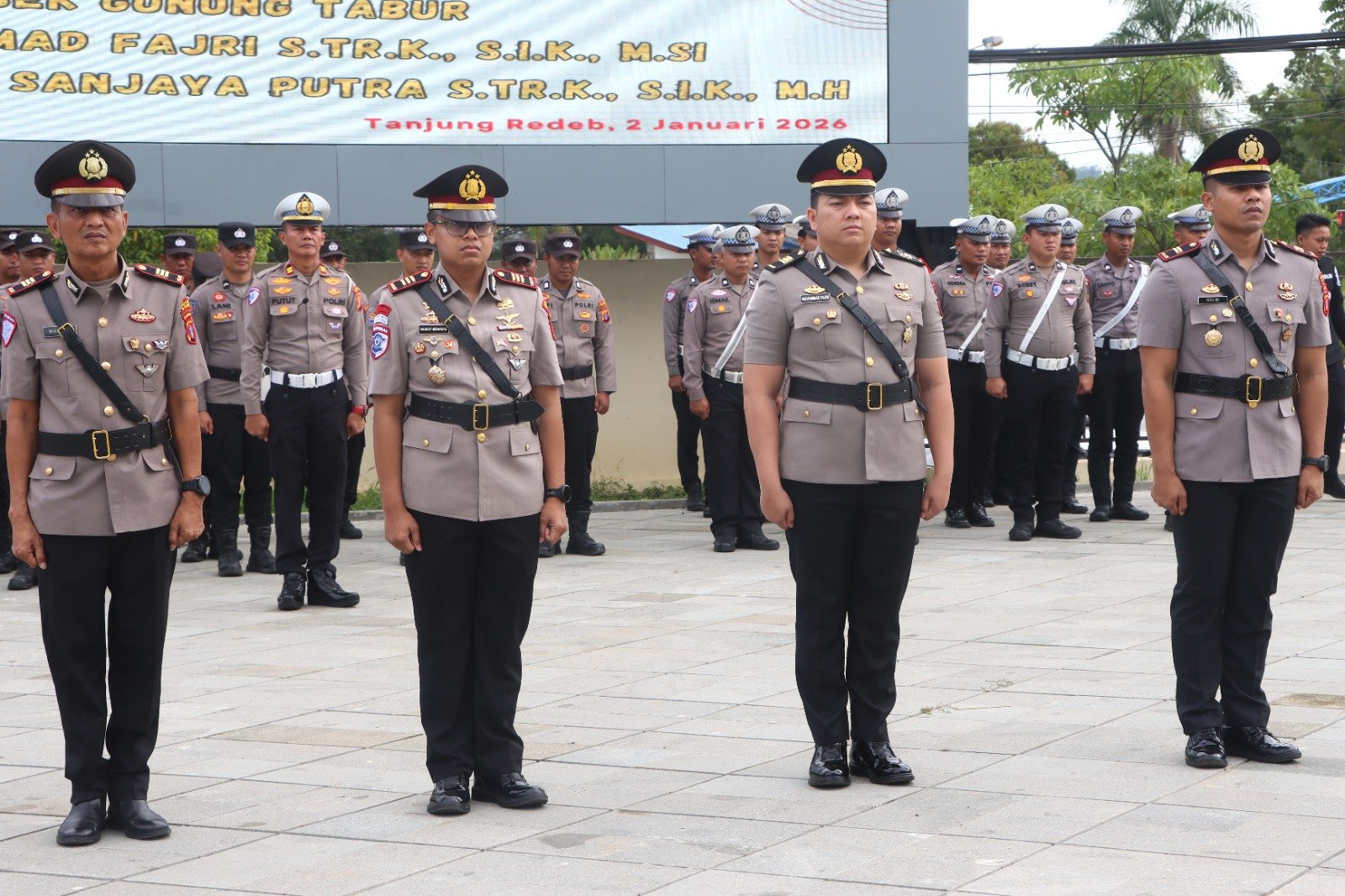 TANJUNG REDEB, Swaraberau.com – Polres Berau menggelar upacara Serah Terima Jabatan (Sertijab) untuk posisi Kepala Satuan Lalu Lintas dan Kapolsek Gunung Tabur, yang berlangsung di halaman Mapolres Berau pada Jumat pagi (2/1/2026). Kegiatan tersebut dipimpin langsung oleh Kapolres Berau, AKBP Ridho Tri Putranto.